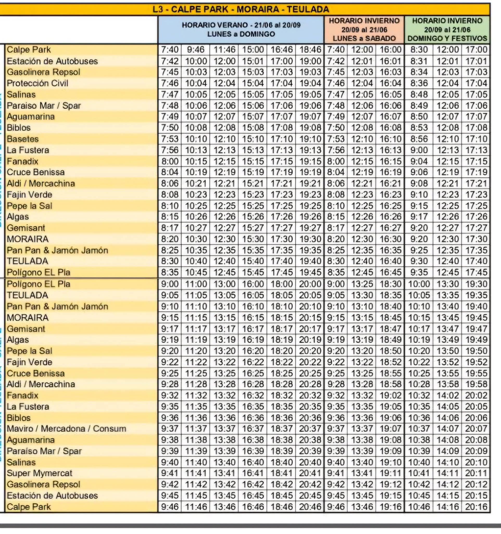 Открыто новое автобусное сообщение по маршруту Calpe park -Benisa - Teulada - Moraira - Polígono El Pia (полный маршрут с расписанием на увеличенном фото внизу статьи).