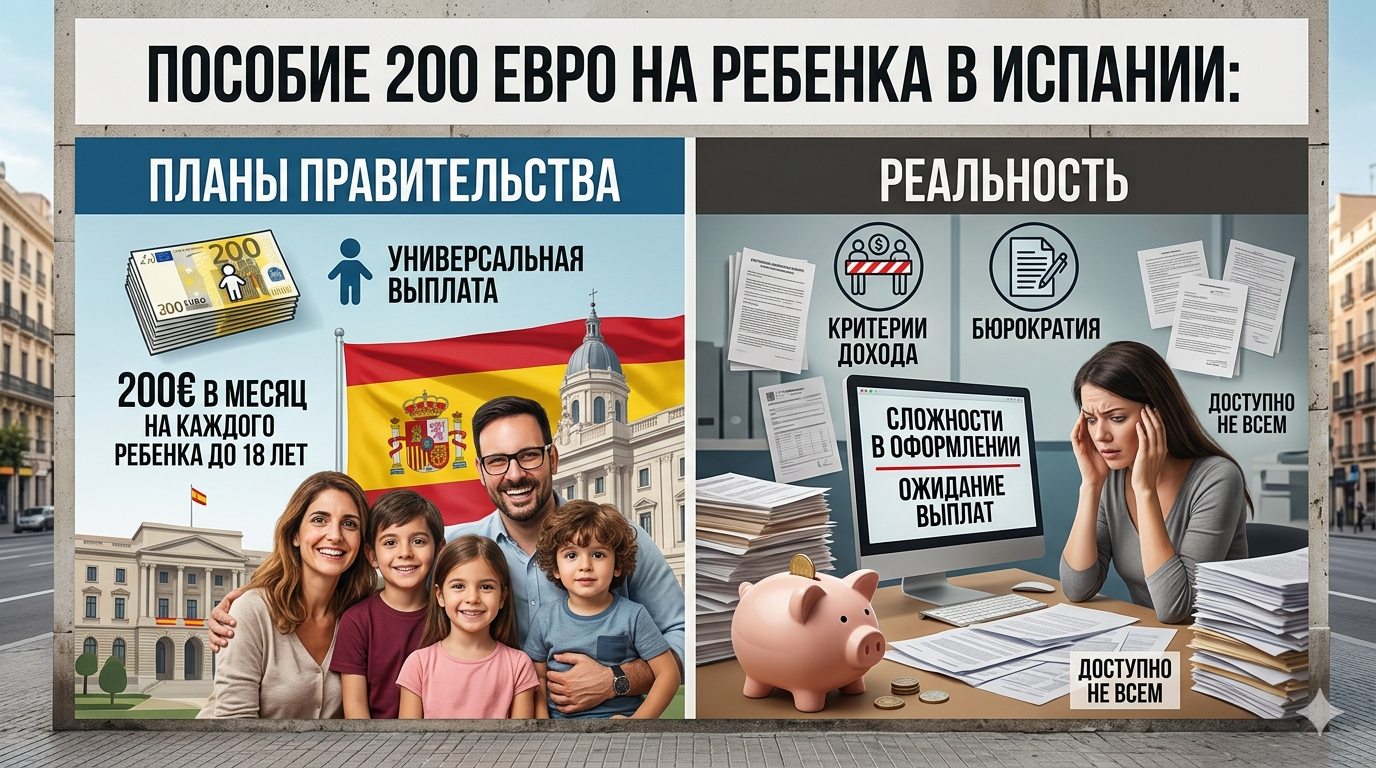 В испанских медиа и социальных сетях активно обсуждается новость о введении универсального пособия на воспитание детей. Сообщается, что правительство Испании одобрило выплату в размере 200 евро в месяц на каждого ребенка до достижения им 18 лет.